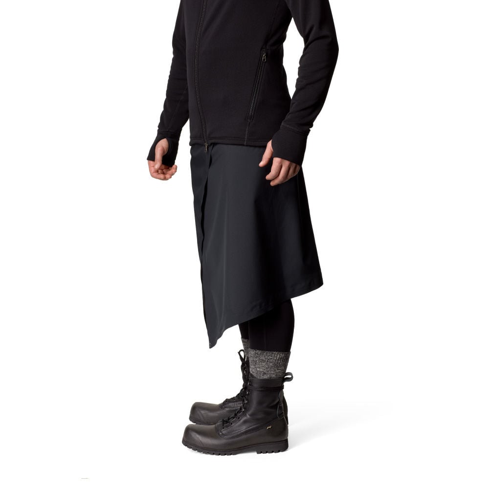 スキーツアーではソフトシェルパンツ、登山ではトレッキングパンツの上に重ねて使用し、シェルパンツを着用するのが面倒なときに最適です。